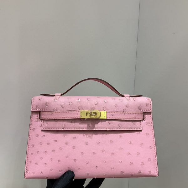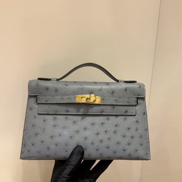エルメス ケリー mini 22CM 手作り オーストリッチ写真色/金具ゴールド 2023AMkelly-0023