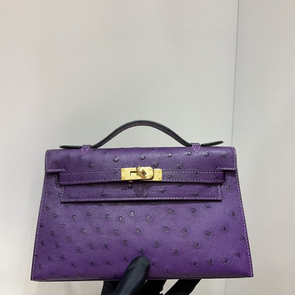 エルメス ケリー mini22手作り オーストリッチ 写真色/金具シルバー 2023AMkelly-0027