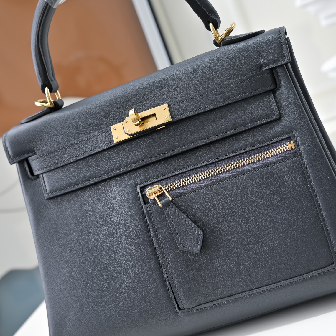 爆発超高品質 エルメス ケリーsellier 20CM Desordre 手作り写真色/金具ゴールド 2023AMkelly-1850-4