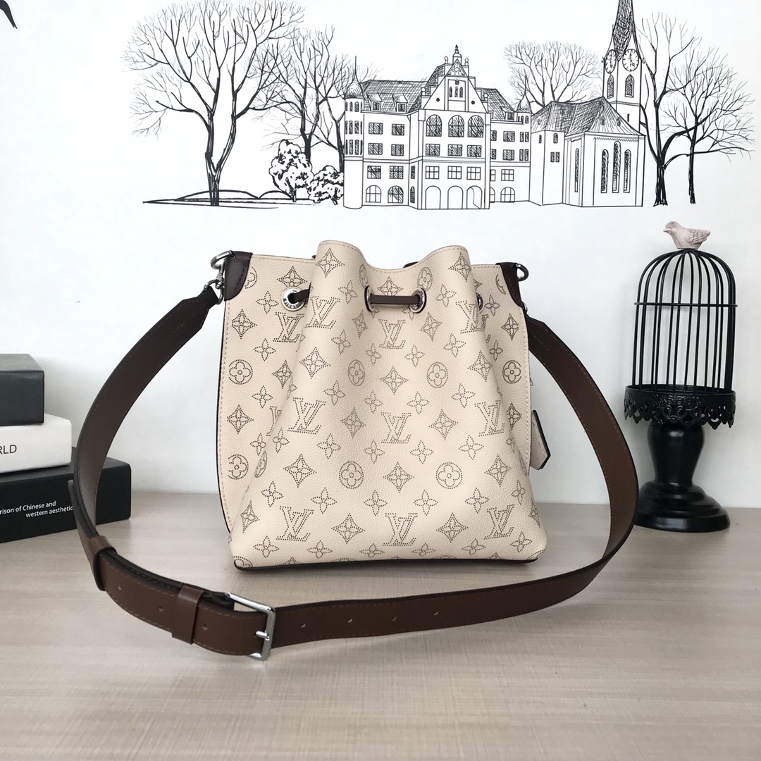 ルイヴィトン LV ショルダーバッグ レザー 本革 シルバー マヒナ DM2001P750-M55801