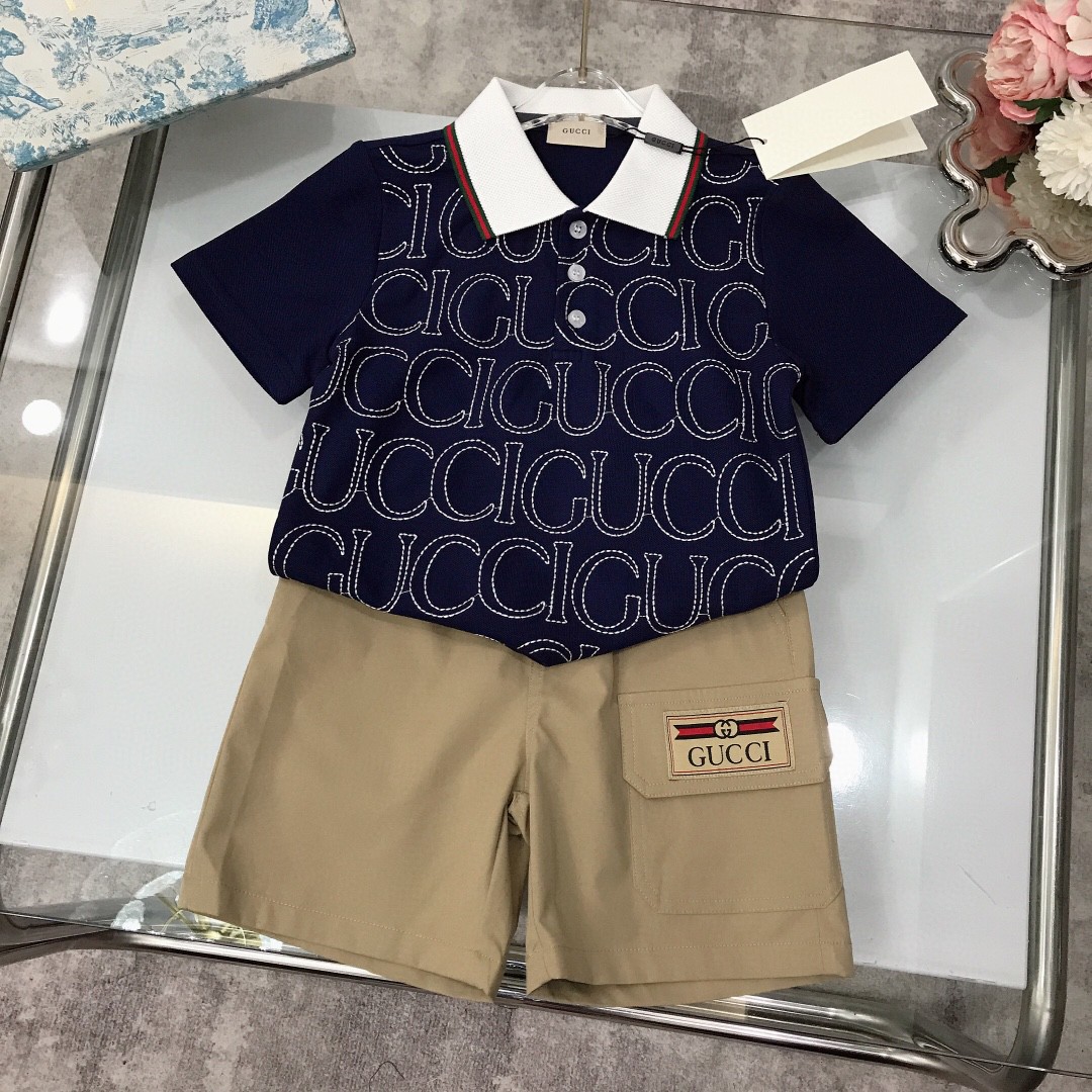 25SS春夏新作 KID’S 服 グッチ 2点スーツ 上下服 2503Arij198-Gu1417